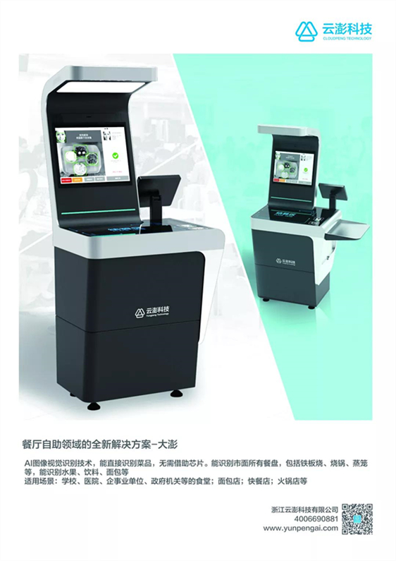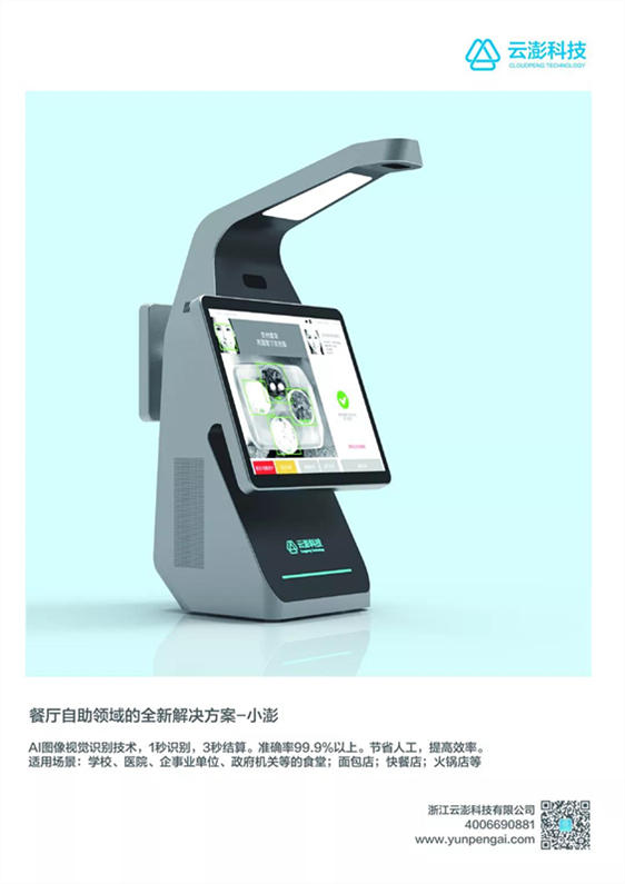 云澎智能結(jié)算餐臺(tái),通過(guò)AI圖像視覺(jué)識(shí)別技術(shù),無(wú)需使用芯片,能直接識(shí)別菜品(包括水果、飲料、面包等),也可識(shí)別市面上所有餐盤(包括無(wú)法植入芯片的鐵板燒、砂鍋、蒸籠等);支持人臉支付、手機(jī)支付、一卡通支付。