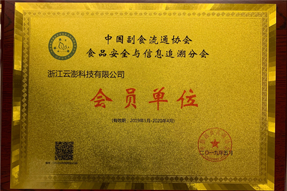 浙江云澎科技有限公司很榮幸被評(píng)為“中國(guó)副食流通協(xié)會(huì)食品安全與信息追溯分會(huì)會(huì)員單位”、“2019中國(guó)食品供應(yīng)鏈創(chuàng)新企業(yè)”、“中國(guó)食品安全倡議公約會(huì)員單位”。